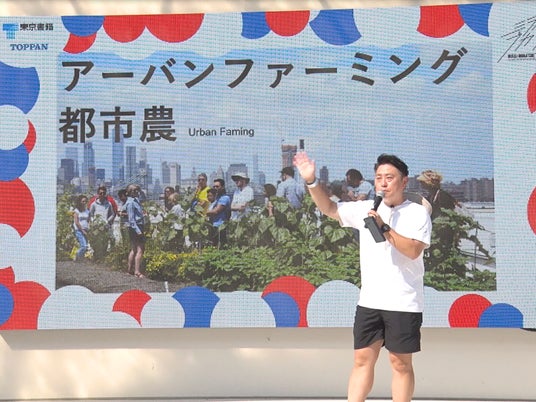 野菜の種プレゼントの際には、プランティオ株式会社 CEO 芹澤孝悦氏が登壇し、都市型農業「アーバンファーミング」や大阪伝統野菜「天王寺蕪」について紹介。今回配布された種は、育てて野菜を収穫したあと、再び種を採種することができる ”いのちめぐる種”。