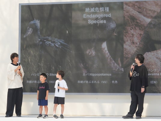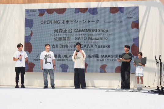 オープニングでは、シグネチャーパビリオン「いのちめぐる冒険」の河森正治プロデューサー、デジタルハリウッド大学教授 佐藤昌宏氏、株式会社baton代表取締役 衣川洋佑氏が登壇。生物多様性や未来の学びについて語り合い、来場者に「未来を守るのは子どもたち自身だ」という力強いメッセージを送りました。