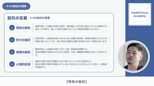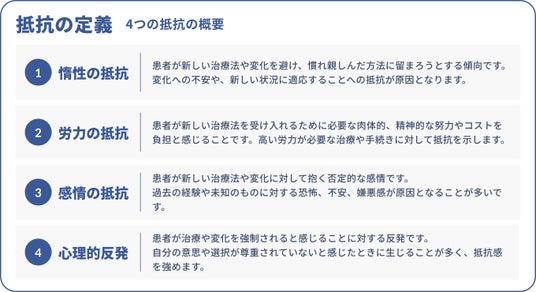一方で、説明の属人化、患者側の抵抗(惰性・労力・感情・心理的反発)、面談後の行動化の失速、 が導入の壁となりがちです。本教育プログラムは、会話の型と院内運用の型を同時に整え、現場の再現性を高めます。