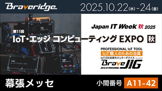 株式会社Braveridge(ブレイブリッジ、本社:福岡県福岡市西区、代表取締役社長 小橋泰成、以下Braveridge)は、2025年10月22日(水)~24日(金)に幕張メッセで開催される「第11回 IoT・エッジコンピューティングEXPO【秋】」に出展いたします。