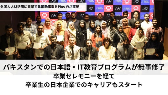 Plus W株式会社(東京都渋谷区、代表取締役社長:櫻井稚子)は昨年、経済産業省のJICS補助事業に採択され、日本で活躍する高度IT人材を輩出することを目的に現地パキスタンにおいて、IT及び日本語教育のプログラム提供を行い、プログラムの提携先の一つであるNPO法人CIRCLEとの間で、6月末に28名の卒業者を輩出しました。このうち3名は当社のインターンとして活躍したのち、2024年7月から、弊社開発スタッフとして日本企業の開発案件に従事する運びとなりましたことをお知らせします。
