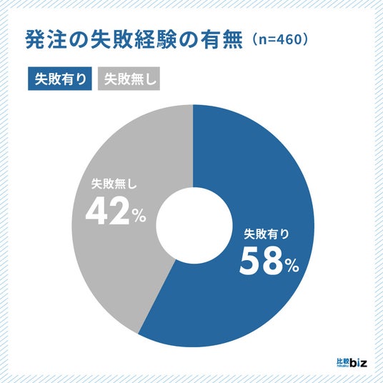 - 58%が発注で失敗経験があり、要因は「発注先選定の時間不足」と「業界知識不足」が中心