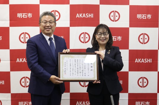 株式会社サカイ引越センター(大阪府堺市:代表取締役社長 田島 哲康)は、明石市の財政白書策定事業に対して企業版ふるさと納税に係る寄附を行い、それに対する感謝状をいただきました。2025年3月24日、感謝状贈呈式が明石市役所で行われ、兵庫県明石市 丸谷 聡子市長、サカイ引越センターからは田島通利専務取締役が出席いたしました。