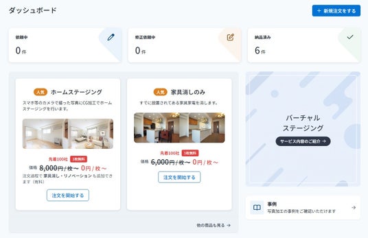 バーチャルホームステージングは、昨今、住まいを探すユーザーからも「住んだときのイメージがわく」として注目を集めており、現場の不動産会社からも「わざわざ家具を搬入するリアルなホームステージングと比べて、圧倒的に低コストかつスピーディーに導入できる」と高いニーズがあります。