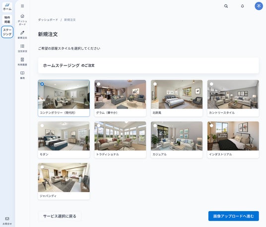 バーチャルホームステージングは、物件写真にCG技術でインテリアを追加し、住まいを探すユーザーへの訴求力を高め、クリック率・反響率アップを狙う機能です。