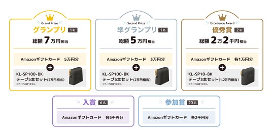 グランプリ(1名):Amazonギフトカード5万円分+KL-SP100-BK・テープ5本セット(2万円相当)