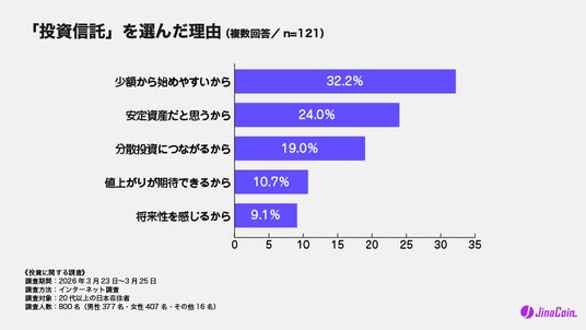 株式会社jaybe(本社:香川県高松市、代表取締役:水澤 誉往)が運営する暗号資産(仮想通貨)ニュースメディア「JinaCoin」(https://jinacoin.ne.jp/)は、20代以上の日本在住者800名を対象に、投資に関するインターネット調査を実施しました。