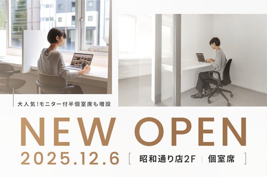 the from でも、これまで利用者の皆さまから「PCや書類などを置いておける個室環境がほしい」「起業初期でも負担なく使える拠点がほしい」「モニター付き半個室の席数を増やしてほしい」といった声を多くいただいてきました。こうしたお声に応える形で、2025年12月6日(土)より、2Fフロアを新たにオープンし、個室席の新設と半個室席の増設を行いました。