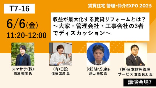 AI賃料査定システムを提供するスマサテ株式会社(本社:東京都品川区、代表取締役社長:山岸 延好)が、2025年6月に開催される『賃貸住宅 管理・仲介EXPO 2025』に出展することをお知らせします。