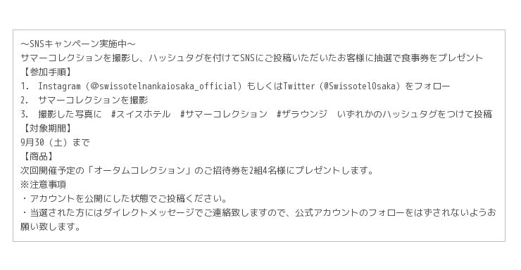◆Instagram https://www.instagram.com/swissotelnankaiosaka_official/