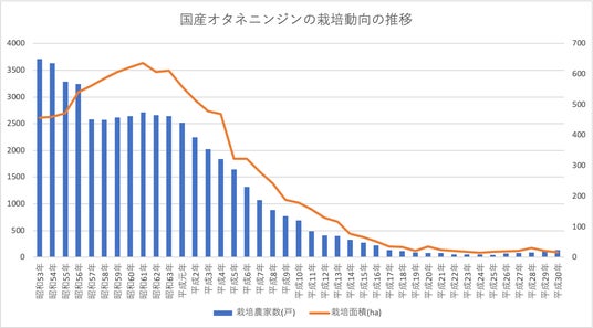 オタネニンジンの国内生産は1950~60年代をピークに大幅に縮小し、栽培農家数・栽培面積ともに激減しました。2020年の栽培農家数は昭和55年(1980年)の約18分の1に、面積は約42分の1になったとの報告もあり、国内自給率は0.4%程度にまで低下しており、ほぼ輸入に依存しているのが現状です。