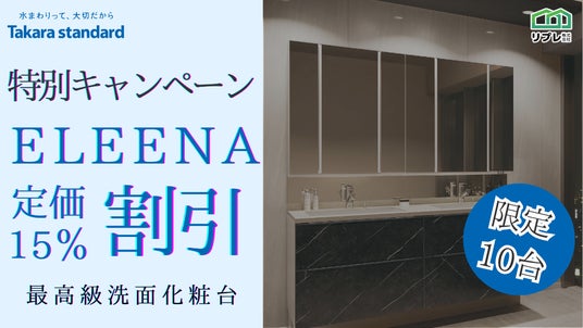 リプレ株式会社(本社:大阪市中央区、代表:古川 賢)は、タカラスタンダードの洗面化粧台「ELEENA(エリーナ)」を対象とした、特別キャンペーンを実施いたします。