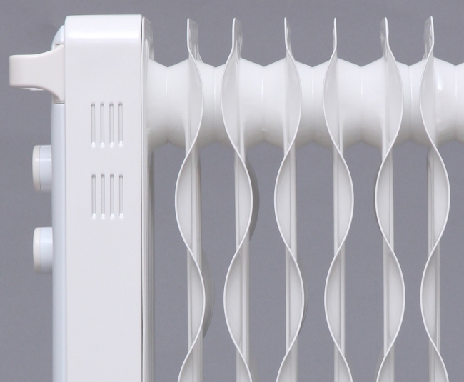 今回発売する「ウェーブ型オイルヒーター」は加温の効率を高めるため、放熱フィンを波打たせた独自の形状を採用しており、直線状の放熱フィンと比較して表面積を約10%拡張しています。そのため赤外線を発する面積と放熱フィンが空気と接する面積を同時に広げることができ、効率的に部屋を暖めることができます。また、エコモード※では室温に応じて一定の時間をおいて稼働と停止を繰り返す間欠運転ではなく、温度変化に合わせて適切な出力調整を行うことにより過度な温度の上下動を抑えることができます。