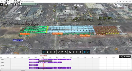 - コルク: クラウド上でのデジタルツイン構築 / GNSS座標と橋桁モデルの連携実装 / 4Dシミュレーション(計画)のリアルタイム再生 / DXsiteの2Dグラフを統合表示