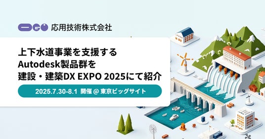 応用技術株式会社(本社:大阪市北区、代表取締役社長:船橋 俊郎、以下、応用技術)は、2025年7月30日(水)から8月1日(金)まで東京ビッグサイトで開催される「建設・建築DX EXPO 2025 夏 東京」に出展し、上下水道事業の計画整備から事業運営までをサポートするAutodesk製品をご紹介します。