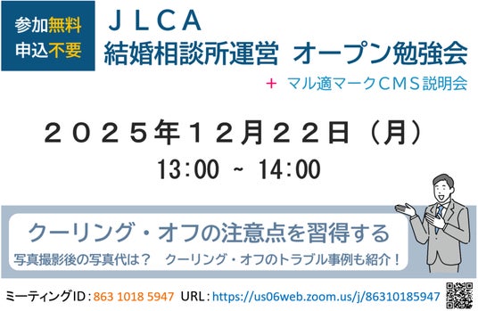 【 特定非営利活動法人 日本ライフデザインカウンセラー協会(JLCA)について 】特定非営利活動法人 日本ライフデザインカウンセラー協会(以下 JLCA)は、2007年1月に設立しました。設立時、国民生活センターに寄せられる結婚相手紹介サービス業いわゆる結婚相談所への相談件数は約3,000件を数え、業界への信頼性低下が非常に懸念される状況でした。そのような中、JLCAは第3者認証機関として「結婚相手紹介サービス業認証制度に関するガイドライン」を基準とした「マル適マーク」の認証発行を2008年12月より開始。当初176事業所だった認証件数は2025年3月現在 約610事業所を数えます。JLCAは「マル適マーク」発行の認証事業と、結婚相談所への研修講座事業を通じ、更なる結婚相手紹介サービス業の信頼性向上に貢献するとともに、結婚を求める消費者の安心・安全な婚活に寄与することを社会的使命とすべく活動しています。