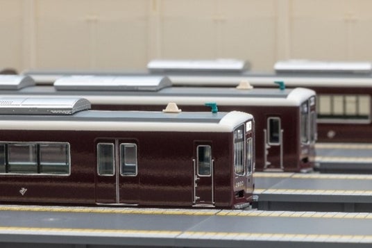 本製品は、「トミックス」として初めて阪急電鉄の車両を製品化するものです。阪急電鉄を象徴する色である、深みのある「阪急マルーン」は、自社工場の最新塗装技術を用いて新規に色調を開発し、艶のあるボディを再現しています。
