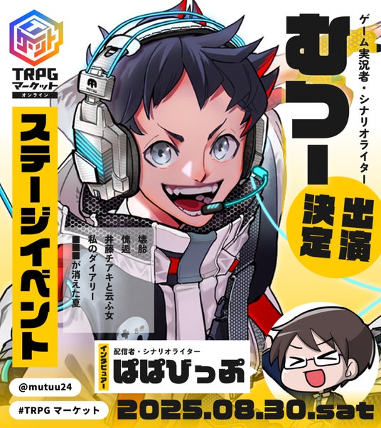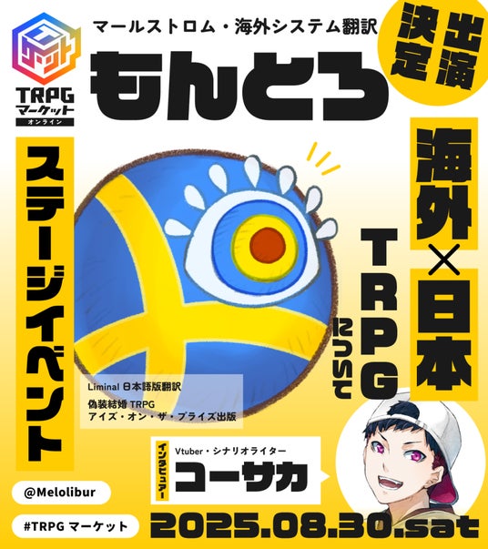 2025年8月30日(土)、TRPG界隈初のオンラインイベント「TRPGマーケット オンライン(略称:Tケット)」が弊社のバーチャル空間「reBako.io(リバコ)」にて開催決定いたしました!