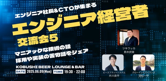 渋谷のマーケター&起業家コミュニティを運営するKOBUSHI MARKETING合同会社(東京都渋谷区、代表:井上裕介)は、2025年6月9日(月)19:30~ ウェブサービスで実績のあるエンジニア社長3名の幹事による、エンジニア社長&CTOが集まる経営者交流会を開催すると発表した。