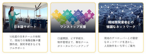 「ドバイの不動産は物件価格の上昇や高利回りが注目される一方、ドバイ特有の手続きや開発事情を理解するうえで信頼できるパートナーは不可欠です。当社では、物件の購入はもちろんのこと、居住ビザの取得やドバイ現地の銀行口座開設や法人設立、ローンによる資金調達、完成した物件の運用や売却といった出口戦略まで、一貫して担う“ワンストップブティック”の体制で、多くの日本人投資家の皆様に“はじめの一歩”を安心して踏み出していただけるよう努めています。」