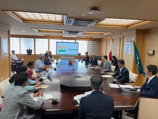 ■岩手県庁表敬訪問(7月11日) 岩手県庁で行われた達増知事への表敬訪問では、訪問団より岩手県の強みである安定したインフラや、いわて半導体関連産業集積促進協議会(I-SEP)を通じた人材育成の取り組みを学び、インドでの半導体産業振興にむけた施策の検討に活かしていきたいとの説明がありました。