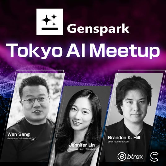 2025年8月29日、虎ノ門ヒルズで開催。100名以上が応募し満席となった本イベントでは、世界初のAI議事録ツールやAIデベロッパー、AIデザイナーなどGensparkの最新プロダクトを発表。共同創業者 COOのWen Sang氏らが登壇し、来場者はライブデモや交流を通じて最先端のAIを体験しました。