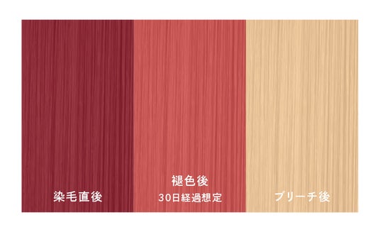 高彩度&高発色設計高彩度で均一に染まる独自の染料構成を実現。髪1本1本にしっかりと染料が定着し、1回の使用でも色ムラを感じさせない仕上がりに。