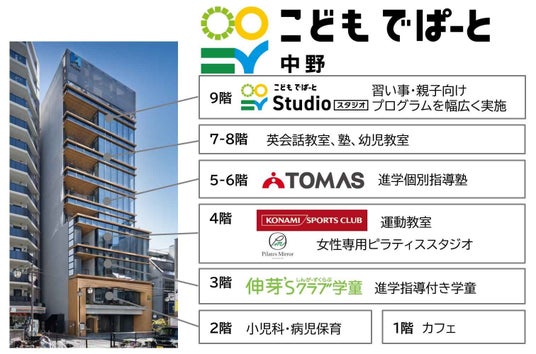 こどもでぱーとは、子育てや教育機能を集約し、子ども一人ひとりに合った最適なサービスを提供する施設です。また、コンシェルジュや送迎機能を設け、教育における保護者の不便や不安を解消するサービスも提供します。本施設での学びや体験を通し、子どもたちの好奇心を育み、一人ひとりの未来を創造することを目指します。現在、2025年4月に開業した「中野」「たまプラーザ」に「自由が丘」「渋谷」「本八幡」「麻布」を加えた6件が既に事業化済、今後2029年を目途に、首都圏を中心に20棟程度の事業化を目標に推進してまいります。
