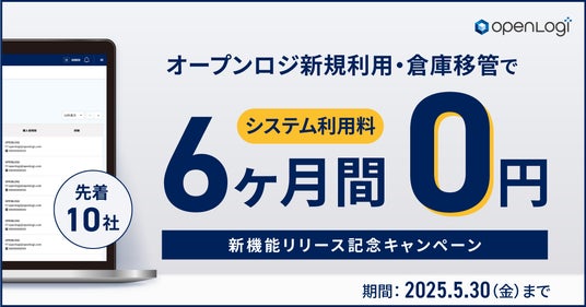 この度、新規サービスの本格提供に先駆けて、オープンロジの既存ユーザーだけでなく、新規ユーザーにも使っていただくことで、さらに幅広いEC事業者に対応できるように進化させたいと考え、10社限定(※)で、受注一元管理システム(OMS)利用料6ヶ月無料にする「新機能リリース記念キャンペーン」を実施いたします。