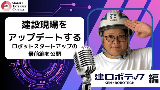 モバイル・インターネットキャピタル株式会社(代表取締役:元木新、本社:東京都千代田区、以下MIC)は、自社で運営するPodcast番組「スナックスナック 起業家のキモチ」において、同社が出資する、建設現場の省力化・省人化を実現するロボットソリューションを提供する建ロボテック株式会社(本社:香川県三木町 代表取締役社長兼CEO 眞部達也、以下、建ロボテック)の眞部代表が初登場することをお知らせします。4月1日より3週連続配信となる本企画では、建設業界の課題解決に挑むスタートアップの軌跡と成長、そして投資家との協業による価値創造の実例を紹介します。