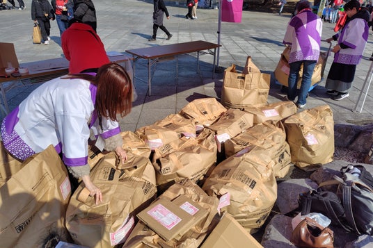 ご自宅にある、使わなくなった古着をスタジアムにお持ちいただくと、回収した古着は、開発途上国で再利用されるとともに、ワクチンの寄付や国内外の雇用創出など様々な社会貢献につながります。前回、2月に初めて実施した際は、専用キット28袋分の古着を回収することができました。