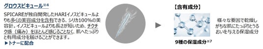 ※1イノスピキュール:加水分解カイメン(整肌)グロウスピキュール:シリカ(整肌)※2 2025年9月末時点、※3 加水分解カイメン(整肌)※4 シリカ(整肌)※5 年齢に応じたケア ※6 ショウヨウダイオウ根エキス、マグワ葉エキス、クララ根エキス、マグノリアオフィシナリス樹皮エキス、プルサチラコレアナエキス(全て整肌)※7 ヒアルロン酸、ヒアルロン酸Na(高分子・中分子・低分子)、加水分解ヒアルロン酸、ヒアルロン酸クロスポリマーNa、アセチルヒアルロン酸Na、ヒアルロン酸ヒドロキシプロピルトリモニウム、加水分解ムコ多糖(全て保湿)