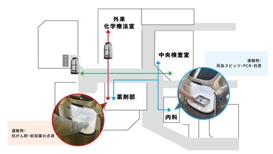 ● 慈恵医大柏病院 2階の検体や薬剤の運搬をロボットに代替