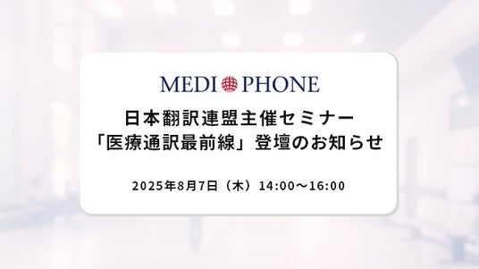 医療機関向け遠隔医療通訳の提供や、企業の健康経営支援を行うメディフォン株式会社(東京都港区、代表取締役:澤田真弓、以下「メディフォン」)は、代表取締役CEOの澤田真弓が2025年8月7日(木)に開催される、一般社団法人日本翻訳連盟(JTF)主催のオンラインセミナーに登壇することをお知らせいたします。