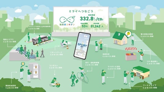 脱炭素エキデンは、「SPOBY」を活用し、行政や企業、市民が連携して様々な環境アクションを実践し、CO2排出抑制を促進する取り組みです。徒歩・自転車による移動やマイボトル、コンポストの活用など、日々の脱炭素行動をアプリ「SPOBY」で記録することで、行動に応じて “脱炭素ポイント”が貯まります。 貯めたポイントは、地元企業などの協賛により提供される商品・サービスと交換可能で、日々の行動が地域の未来につながる“価値ある行動”として可視化・還元される仕組みです。