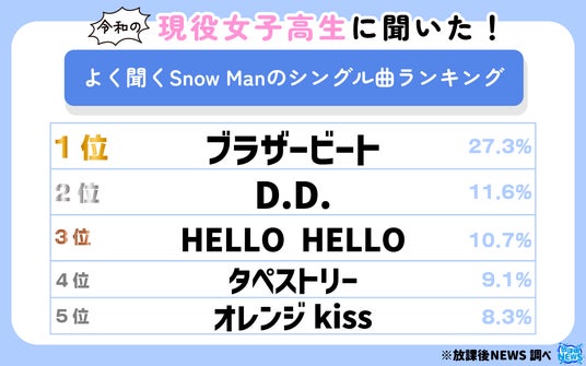 【令和の現役女子高生に聞いた!よく聞くSnow Manのシングル曲ランキング】