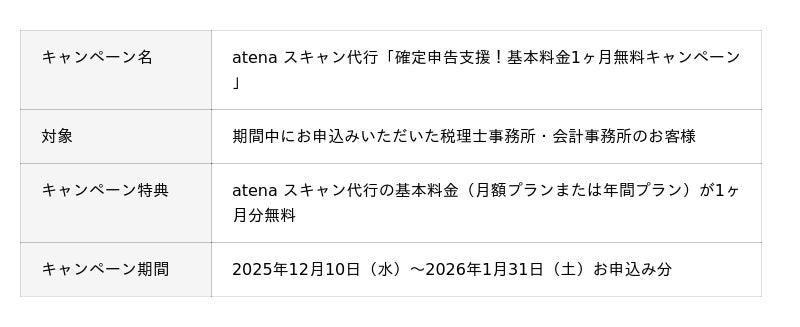 正式リリースに合わせ、繁忙期を迎える税理士・会計事務所の皆様の業務負荷軽減を目的とした「基本料金1ヶ月無料キャンペーン」を期間限定で実施いたします。