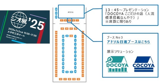 今回の展示では、AI機能搭載の商圏分析ソリューション「DOCOYA」、店舗情報マッピングサービス「COCOYA(ココヤ)」を中心に展示する予定です。