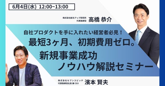 人事評価内製化プログラム『ジョブオペ(R)︎』を展開する、株式会社給与アップ研究所(本社:東京都千代田区、代表取締役:高橋 恭介)は、Webサービス・アプリ開発やITコンサルティングを提供する株式会社Seventh-Pitch(代表取締役社長兼CEO:濱本 賢夫)と共催で、新規事業立ち上げ支援に特化したセミナーを開催いたします。