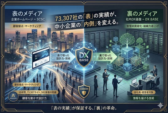 DX BASEの社会的意義は「新しいDXツールが生まれた」という次元にとどまりません。15年間・73,307社の「表のメディア」で鍛え上げた知見・技術・信頼を、そのまま中小企業の「内側」に注ぎ込む──この構造こそが、他のどのDXサービスにも存在しない、ガーディアン固有の社会的価値なのです。