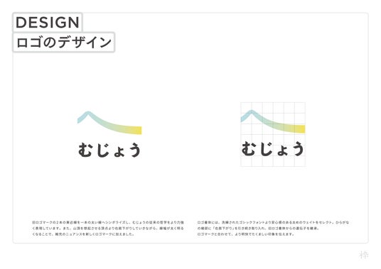今回のVI刷新では、この旧ロゴの思想的背景を受け継ぎながらも、むじょうの現在地と未来にふさわしい、新たな造形へとアップデートを行いました。