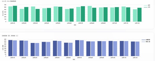診療科別、期間別、患者層別など、複数の切り口から経営状況を可視化。