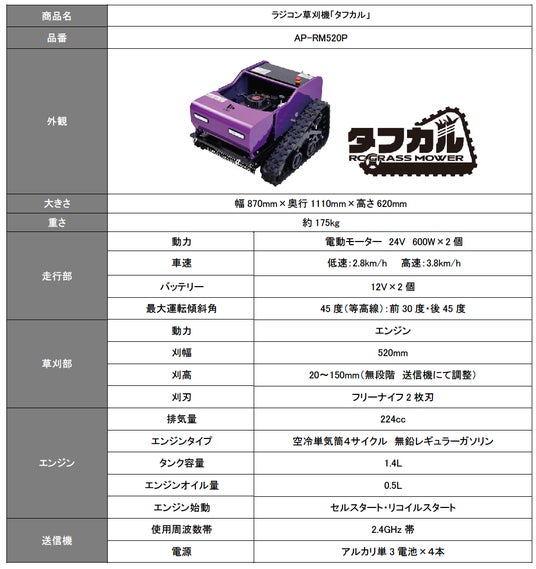 エムケー精工株式会社(本社:長野県千曲市、代表取締役:丸山将一)は、ラジコン草刈機「タフカル」を2026年4月15日(水)から全国で販売開始します。
