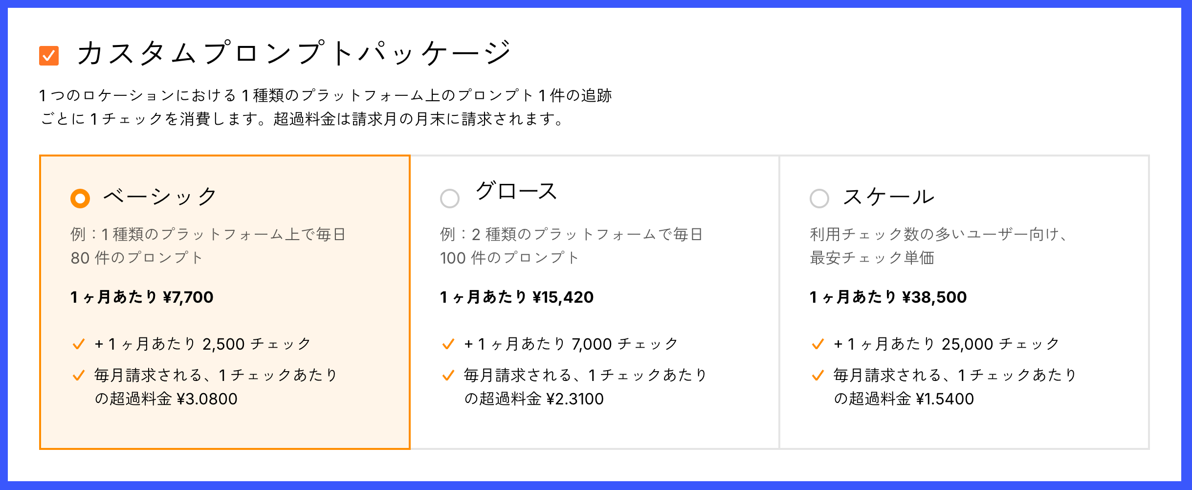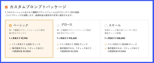 「カスタムプロンプト」のベーシックプランは月額 7,700 円で利用が可能になり、分析のスモールスタートが可能になった。