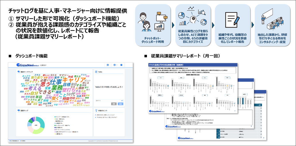 『GrowNavi Reflect』は、社員一人ひとりの“気づき”と“内省”を支援するAIサービスであり、人的資本経営の実践を力強く後押しする起点となります。