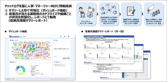 人事部門・マネージャー向け:会話データを集約し、傾向を把握するダッシュボード、課題を整理した月次サマリーレポート(詳細は図表3,4,5を参照)