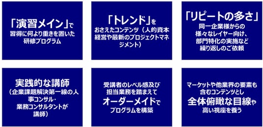 特定の業界や業種に限らず、多くの企業が共通の課題を抱えていることは明らかであり、こうした背景を踏まえ、弊社が有する育成ノウハウと研修実績を体系化して、人材育成(研修)支援を独立したサービスとして提供開始することといたしました。