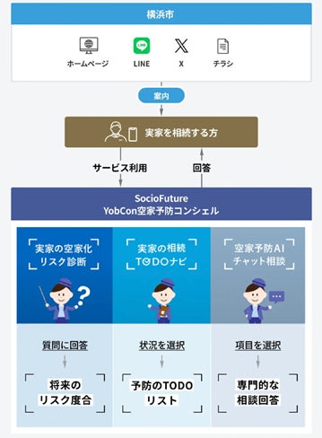 SocioFuture株式会社(本社:東京都港区、代表取締役 社長執行役員 菅原 彰彦、以下「当社」)は、横浜市(市長 山中 竹春)と協定を締結し、生成AIを活用して空家対策を行うサービス「YobCon空家予防コンシェル(読み方:ヨブコン あきやよぼうコンシェル。以下、本サービス)」の実証実験を2026年2月13日より開始します。本サービスは、持ち家に住む高齢者世帯の子どもの世代(以下、子世代)を対象に、将来的に相続などにて実家が空家にならないよう、段階に応じた情報提供や分野をまたぐ複合的な相談対応を行い、ユーザーを継続的に支援します。専用のLINE公式アカウントより無料で利用できます。空家の増加は、地域の治安や景観の悪化につながるため、全国の自治体でも深刻な課題となっています。当社は、本実証実験を通じて、空家予防に向けた実践的な対策モデルを構築し、地域における安心安全な社会づくりに貢献します。