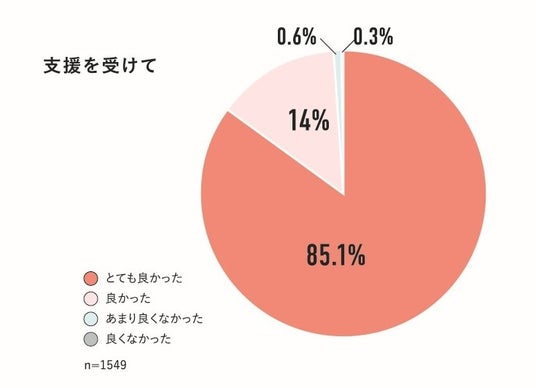 支援先団体の99.1%が、支援を受けて「とても良かった」「よかった」と回答しています。※