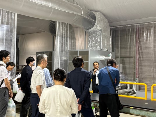 間仕切りによる断熱など理に適っており、大空間を効率的に空調されていると感じました。外気と比較して、施設内は風をほとんど感じない涼しい快適な空間を作り出せており、実機や実際の施設を見ることができて大変参考になりました。